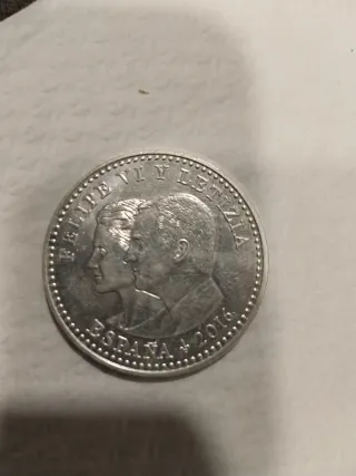 Moneta commemorativa della Spagna dell'anno 2016. Presenta i profili di Felipe VI e Letizia. Iscrizione SPAGNA e 2016 sul bordo.