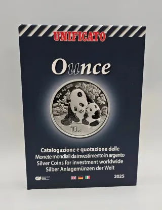 Catalogo Ounce edizione 2025. - Copertina con design Unificato. - Illustra monete mondiali in argento per investimento. - Include Silver Coins for investment worldwide e Silber Anlagemünzen der Welt.