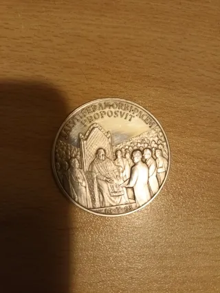 Medaglia commemorativa di Papa Giovanni Paolo II. polacca 1991 argento - Mostra il suo stemma. - Presenta iscrizioni in polacco. - In buone condizioni, con segni del tempo.