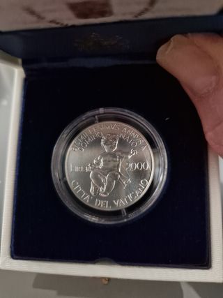 Vendo moneta L.2000 in argento 835 peso 16 grammi per il bimillenario della nascita di Gesù. Vendo in astuccio originale