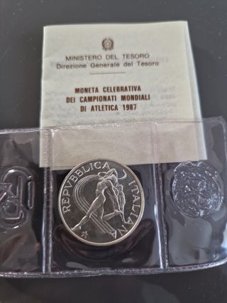 Vendo moneta argento 835 del peso di 11 grammi. L.500 per i campionati mondiali di atletica di Roma vendo in astuccio originale