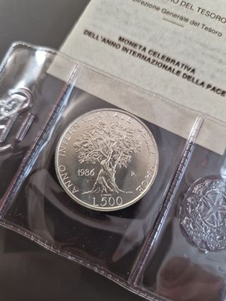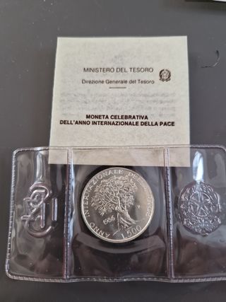 Vendo moneta argento 835 peso 11 grammi. L.500 del 1986 celebrativa dell'anno internazionale della pace. Vendo in astuccio originale