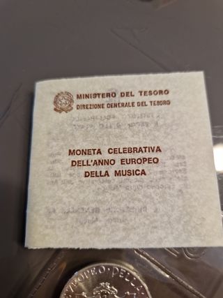 Vendo moneta argento 835 11 grammi L.500 del 1985 celebrativa dell'anno europeo della musica. Vendo in astuccio originale