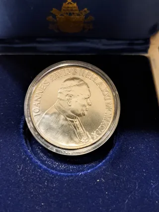 Vendo moneta L.500 in argento 835 peso 11 grammi celebrativa del 50esimo anniversario di sacerdozio di sua santità Giovanni Paolo II. Vendo in astuccio originale