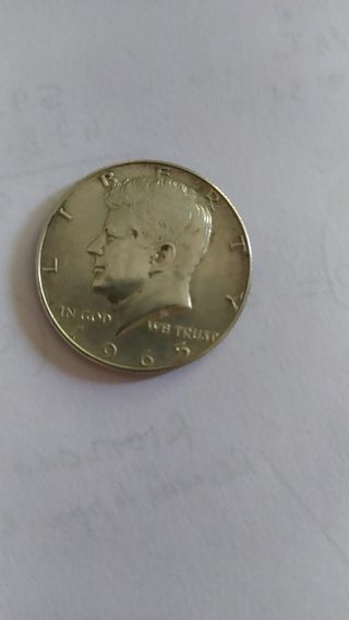 Moneta da mezzo dollaro USA -KENNEDY- in argento - Anno 1965 quasi FdC. Dritto: John F. Kennedy (35° presidente degli Stati Uniti) Rovescio: Aquila (araldica) Caratteristiche: -Periodo 1951-1980 -Metallo: argento 0,400 -Bordo zigrinato -Peso: 11,5 gr. -Diametro: 30,6 mm. -Spessore: 2,15 mm. -Conservazione: Quasi Fior di Conio come da foto. La moneta viene fornita in capsula protettiva