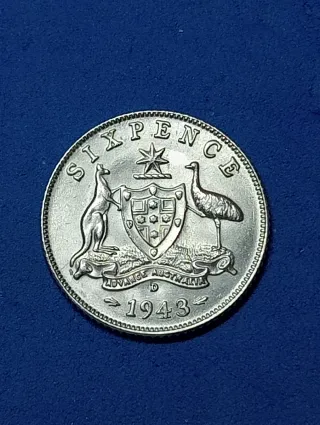 Moneta australiana in argento del 1943 6 pence in conservazione FDC fior di conio non dì facile reperibilità in questa conservazione vedi foto Allegate. - Raffigura uno scudo con un canguro e uno struzzo. - Dicitura Advance Australia e anno 1943.