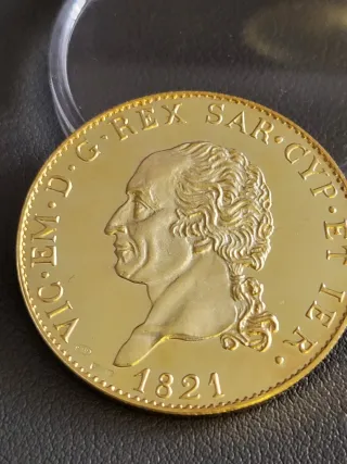 Medaglia commemorativa in argento con l'effigie di un sovrano e l'anno 1821. 25 grammi - Dettagli incisi sul bordo: VIC EM D G REX SAR CYP ET R. - Anno: 1821.