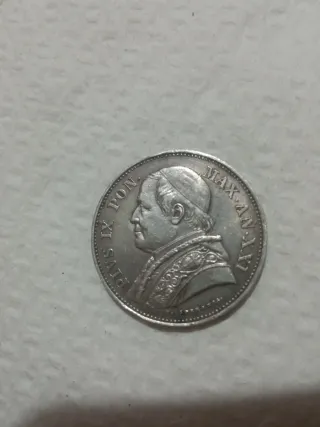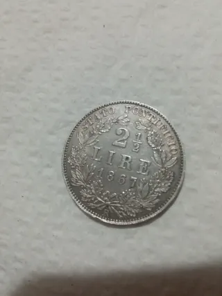 Moneta da 2 Lire e 1/2 in argento coniata nel 1867. - Effigie di Papa Pio IX. - Anno di coniazione: 1867. - Metallo: Argento.