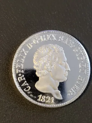 Medaglia commemorativa in argento 999 del Regno di Sardegna, coniata nel 1821. - Dritto: Ritratto di Re Carlo Felice. - Rovescio: Stemma sabaudo. - Materiale: Argento puro 999. - Anno di coniazione: 1821. -13 grammi