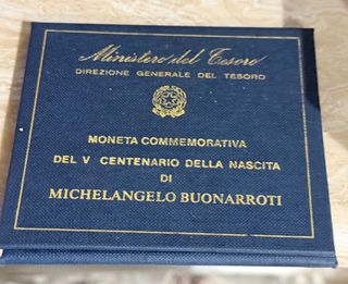 Moneta commemorativa in Argento dedicata al V centenario della nascita di Michelangelo Buonarroti nel suo cofanetto originale e certificato. - Moneta commemorativa. - Celebra il V centenario della nascita di Michelangelo Buonarroti. - Emissione del Ministero del Tesoro, Direzione Generale del Tesoro.