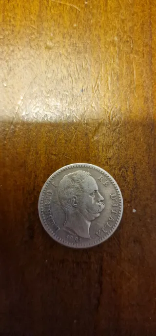 Moneta da 2 lire in argento del 1881, coniata durante il Regno d'Italia. Sul dritto è raffigurato lo stemma sabaudo coronato, mentre sul rovescio è presente il valore 2 e la scritta LIRE. - Materiale: Argento - Anno: 1881 - Valore: 2 Lire - Emissione: Regno d'Italia