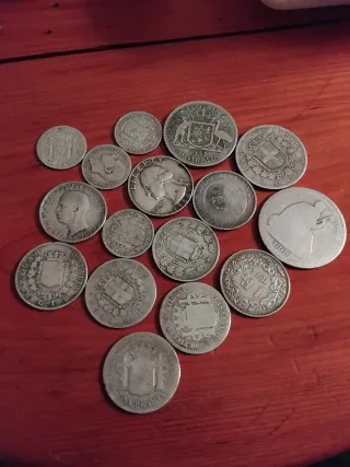 Collezione di monete di epoche e provenienze diverse. 87 circagr più valore numismatico - Diverse monete con stemmi e figure. - Alcune monete con iscrizioni in latino. - Monete con date visibili come 1953 e 1964.