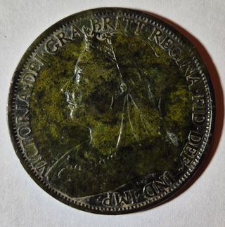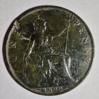 Moneta da un Penny del Regno Unito, anno 1899. Realizzata in bronzo. - Dritto: Ritratto di Regina Vittoria. - Rovescio: Figura di Britannia. - Condizioni: BB (Bellissima).