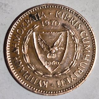 Moneta da 5 Mils in bronzo della Repubblica di Cipro, coniata nel 1970. - Anno di coniazione: 1970 - Materiale: Bronzo - Condizioni: SPL (Splendido)