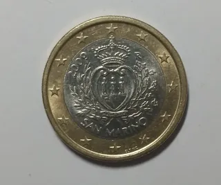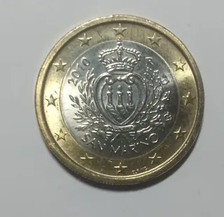 Moneta da 1 Euro commemorativa di San Marino del 2010. - Dritto: raffigura lo stemma della Repubblica di San Marino. - Rovescio: rappresenta il valore nominale. - Anno di conio: 2010. - Paese: San Marino.