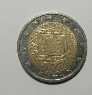 Moneta commemorativa da 2 Euro della Germania, emessa nel 2015. Conio A - Dritto: Raffigura il Bundesrepublik Deutschland con le stelle dell'Unione Europea. - Rovescia: Design commemorativo specifico per l'anno 2015.
