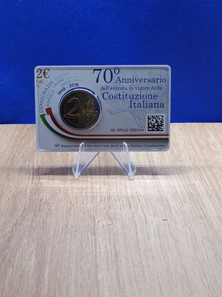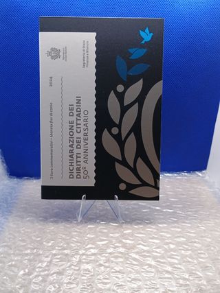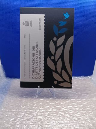 Bellissima coincard commemorativa da collezione. - Dedicata al 50° anniversario della Dichiarazione dei Diritti dei Cittadini di San Marino. - Contiene una moneta da 2 euro. - In perfette condizioni.