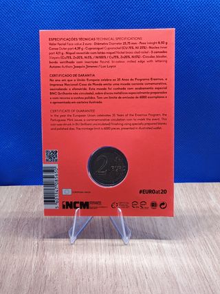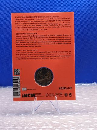 Moneta commemorativa da 2 euro del 2022, emessa dal Portogallo per celebrare i 35 anni del programma Erasmus. - In confezione originale. - Con certificato di garanzia. - Tiratura limitata a 6000 pezzi. - In perfette condizioni.