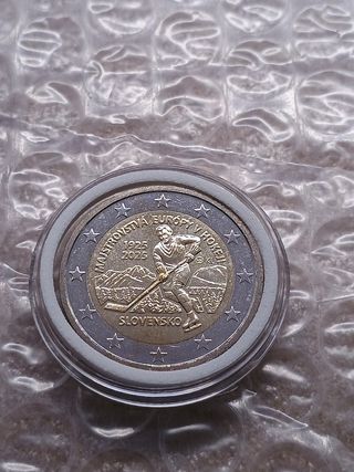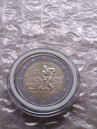 56) 2 euro commemorativo Slovacchia 2025. Campionato del mondo Hockey su ghiaccio. Da rotolino zecca UNC.