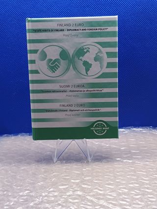 Bellissima moneta da 2 euro commemorativa finlandese del 2025, dedicata alle visite di stato. - Confezione originale. - Qualità da collezione. - Perfetta per numismatici o appassionati di storia finlandese. In cofanetto ufficiale zecca. Proof.