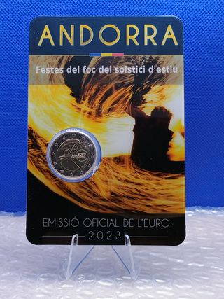 Bellissima moneta da 2 euro commemorativa di Andorra del 2023, dedicata al Solstizio d'Estate. - Moneta in perfette condizioni. - Consegnata nella sua card originale.