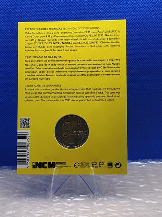 Moneta commemorativa da 2 euro del Portogallo del 2023, dedicata alla pace. - In confezione originale. - Coniata dalla Casa della Moneta Portoghese. - Tiratura limitata a 7500 pezzi.