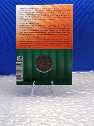 Bellissima coincard commemorativa della rivoluzione dei garofani portoghese del 25 aprile, coniata nel 2024 dalla Casa della Moneta Portoghese. - Moneta da 2 euro in condizioni perfette. - Tiratura limitata a 7500 esemplari. - Confezione originale inclusa.