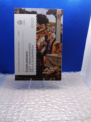 Bellissima coincard commemorativa da 2 euro dedicata al 530° anniversario della scomparsa di Domenico Ghirlandaio, emessa da San Marino nel 2024. - Illustrata con dettagliate immagini raffiguranti opere del celebre artista. - Perfetta per collezionisti o appassionati di arte e numismatica. - In ottime condizioni.