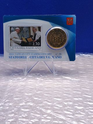 Bellissima coincard del Vaticano, numero 36, dell'anno 2021. Include una moneta da 50 centesimi e un francobollo. La coincard è in ottime condizioni. - Moneta da 50 centesimi di euro. - Francobollo commemorativo. - Numero di serie 36.