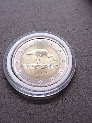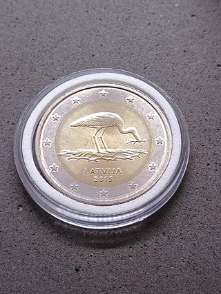 Moneta da 2 euro commemorativa della Lettonia, coniata nel 2015 e raffigurante una cicogna nera. La moneta è in ottime condizioni ed è conservata in un contenitore protettivo. - Moneta da 2 euro - Commemorativa Lettonia 2015 - Raffigura una cicogna nera 57