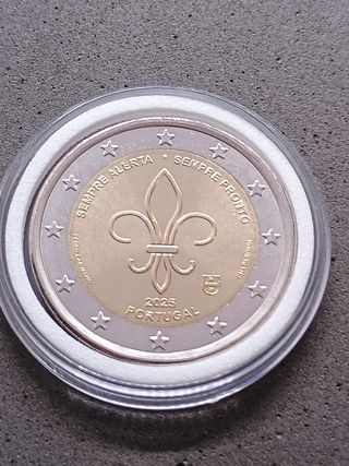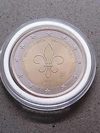 Moneta da 2 euro commemorativa del Portogallo, coniata nel 2025 e raffigurante uno stemma degli scout. La moneta è in ottime condizioni. - Moneta commemorativa da 2 euro - Portogallo 2025 - Tema: Scout - In perfette condizioni 61