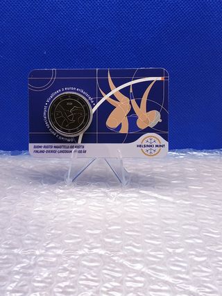 Moneta da 2 euro commemorativa in card, con illustrazione di un evento sportivo tra Finlandia e Svezia. - Moneta del 2025. - In perfette condizioni. - Consegna a mano o spedizione. 1