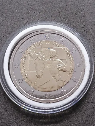 Moneta commemorativa da 2 euro della Croazia, anno 2025. - Raffigura Re Tomislav a cavallo. - Design bimetallico. 71