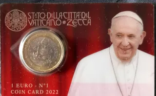Coincard del Vaticano del 2022, con la moneda de 1 Euro. - Edición N.1. - Diseño especial conmemorativo. - Incluye la imagen del Papa Francisco.