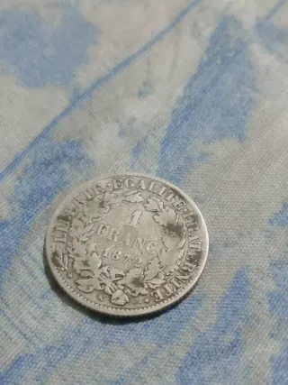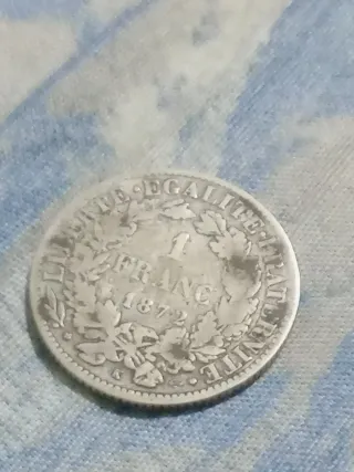 Moneta da 1 Franco francese, coniata nell'anno 1872. - Dritto: LIBERTE EGALITE FRATERNITE - Rovescio: 1 FRANC e 1872 - Presenta una corona di alloro.