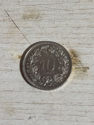 Moneta da 10 centesimi di Franco Francese. - Dettaglio floreale sul bordo. - Numero 10 centrale.