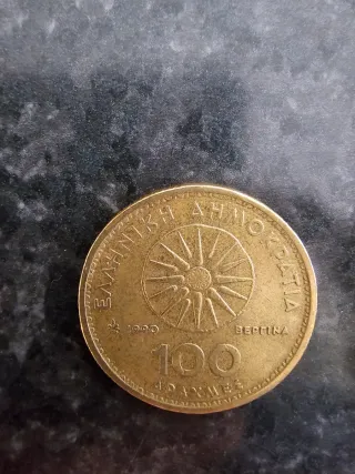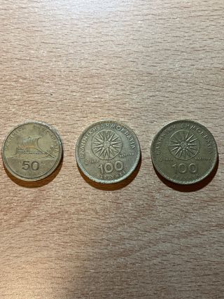 Lotto composto da 4 monete greche pre-Euro. - 2 monete da 100 dracme. - 2 monete da 5 dracme.