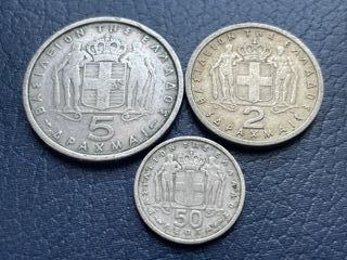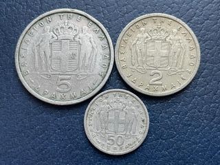 Lotto 3 - Monete greche da 5, 2 e 0,50 Dracme