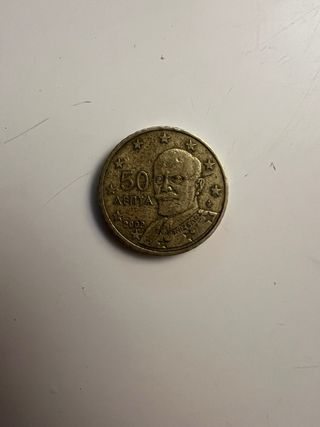 50 centesimi di euro di monete. - Anno di conio: 2002 -Design nazionale del viso: Eleftherios Venizelos. -Design comune del viso: Mappa dell'Europa