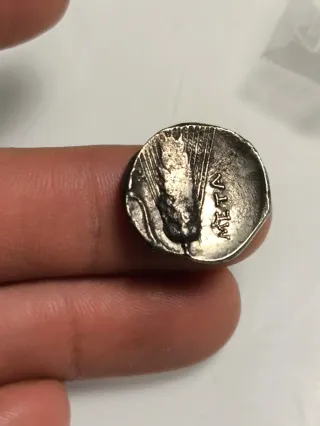 Bellissima moneta d'argento antica, con un design dettagliato. ARGENTO OPACO 19 mm e 7,81 gr Catalogazione HGC 1 1063 Lotto numero 103 dell'album 2 - Origine: Lucania, Metapontium. - Materiale: argento.