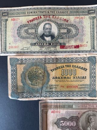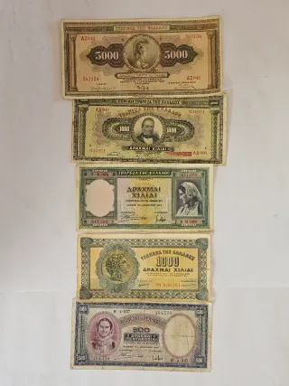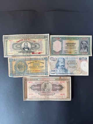 Lote di Banconote Greche 5000, 1000, 500 Dracme