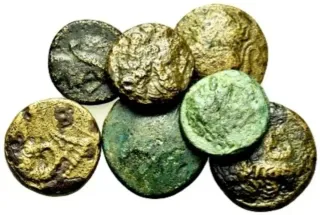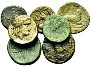 7 antiche monete in bronzo da catalogare. Circa IV-I a.C. Asia Minore. Varianti, diametri e pesi diversi. 》Valore stimato: 450€. L'Asia Minore era un crocevia culturale chiave nel mondo antico, dove convergevano influenze greche, persiane, romane e di altre civiltà. Dopo le conquiste di Alessandro Magno, emersero regni indipendenti come Pergamo e Ponto, che prosperarono in economia, arte e scienza. • Lotto di monete greche antiche