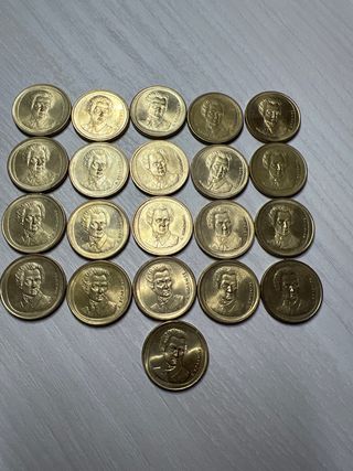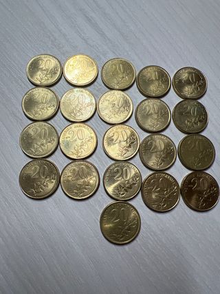 Lotto di 21 monete da 20 dracme della Grecia. Ogni moneta presenta un design commemorativo. - Monete da 20 dracme greche. - Design con rami di ulivo e il numero 20.