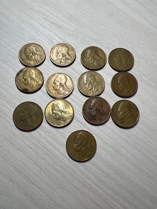 Lotto composto da diverse monete, alcune di origine italiana e altre greche.Vendo varie monete, desidererei una giusta valutazione d'acquisto ,non comprate fate una giusta valutazione - Moneta Repubblica Italiana con nave. - Moneta Repubblica Italiana con profilo. - Moneta greca con nave. - Moneta in rame con iscrizione IMPERATORE e data 57-08-46.