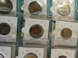serie di sette monete tranne la moneta da 2 euro proveniente dalla Grecia, tutte non circolate. - Tre monete da 1, 2 e 5 centesimi di euro con il disegno di capre. - Tre monete da 10, 20 e 50 centesimi di euro con il disegno di una nave. - Una moneta da 1 euro con il disegno della croce.