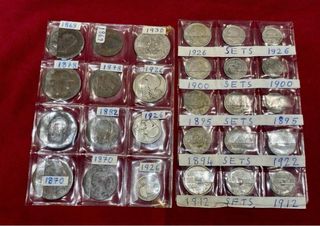 Set di 42 monete dell'antica Grecia, ognuna nel suo scomparto individuale.!! ATTENZIONE SONO RIPRODUZIONI!! - Indispensabile per i collezionisti - Vari design con personaggi e simboli storici. - Diametri diversi _ Placcato in argento Numismatica - Monete greche