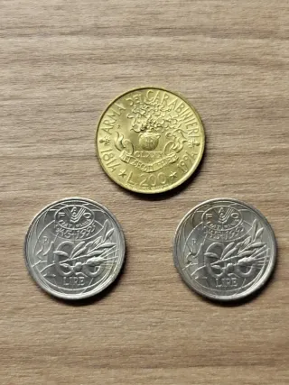 Lotto composto da 11 monete italiane di diversi tagli e anni. - Monete con valore 50, 100, 150, 200 Lire. - Alcune monete presentano segni del tempo. - Anni visibili: 1979, 1995.