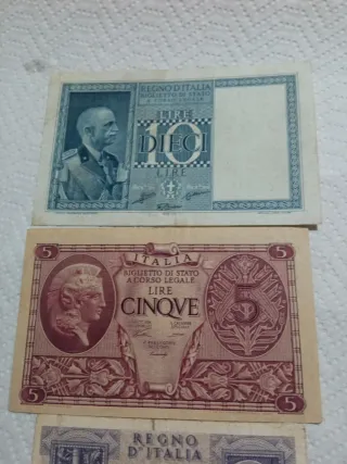 Lotto di 4 banconote del Regno d'Italia. - Banconota da 10 Lire con ritratto di Vittorio Emanuele III. - Banconota da 5 Lire. - Banconota da 2 Lire. - Banconota da 1 Lira.