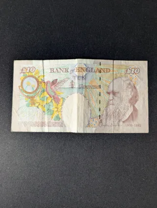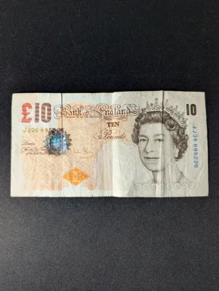 Banknota da 10 sterline inglesi del Bank of England. Serie JJ36 695226. Firma di Andrew Bailey.
