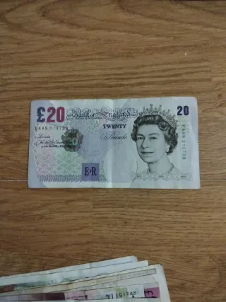 Due banconote da 20 sterline inglesi della Banca d'Inghilterra. - Valore totale: 40 sterline. - Design con la Regina Elisabetta II.